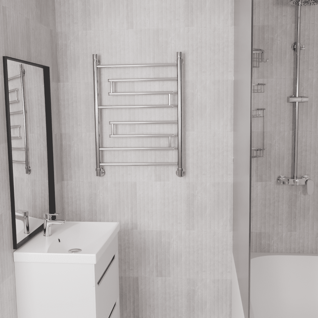 Изделие не подвержено коррозии и деформации от технической воды, перепадов температуры и высокой влажности. Причина этому — высококачественная нержавеющая сталь марки AISI 304 в основе изделия. Также на сохранение функционала и внешнего вида полотенцесушителя оказывает влияние полированная поверхность. Царапины и помутнения не будут портить комфортную жизнь в ванной, а срок службы изделия будет существенно продлен.