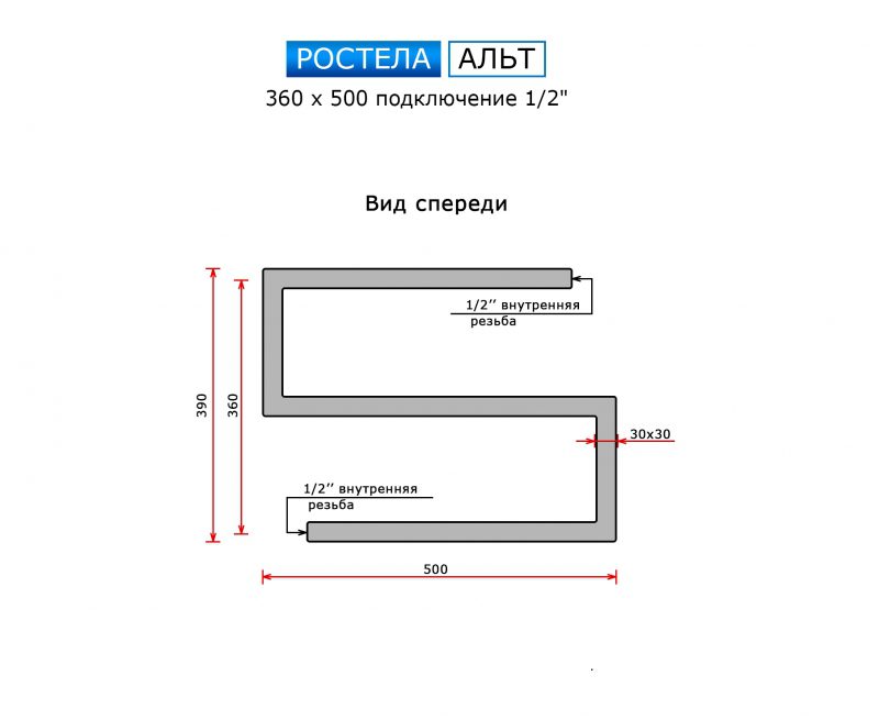 Полотенцесушитель Ростела Альт (подв., 1/2") 360х500