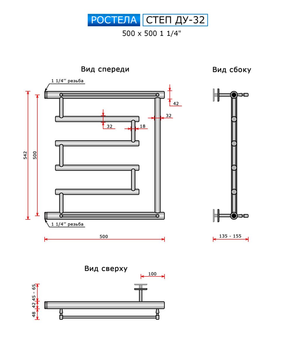 Полотенцесушитель Ростела Ду-32 (бок.подв., 1 1/4" резьба) Степ 500 x 500
