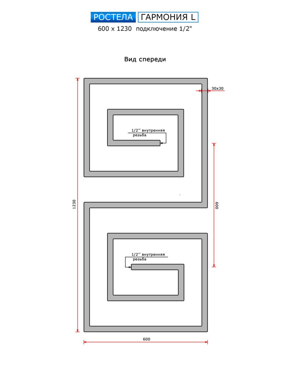 Полотенцесушитель Ростела Гармония L (подв., 1/2") 600 х 1230