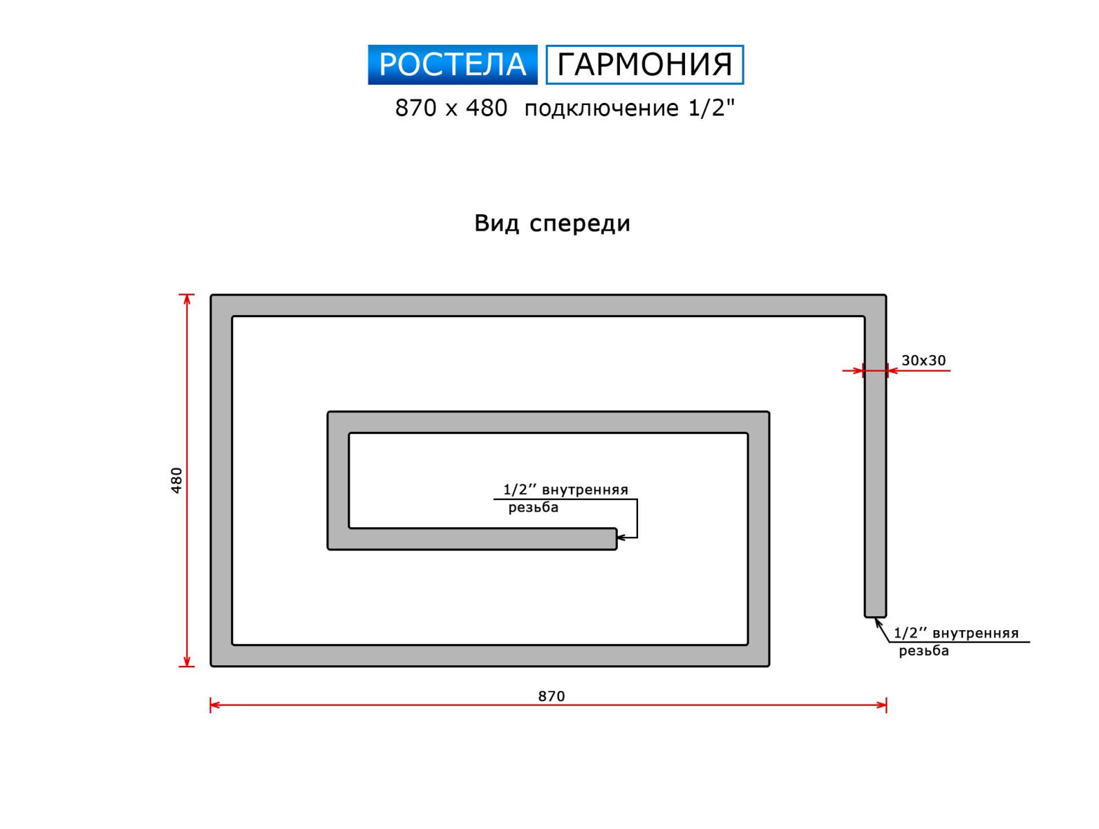 | Диаметр трубы (коллектора) | 30 мм |