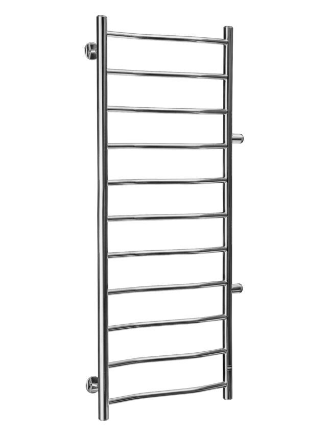 Полотенцесушитель с боковым подключением и типом перекладин в виде волны, которые расположены на одинаковом расстоянии друг от друга. Волнообразные перекладины добавят изюминку в дизайн ванной комнаты.