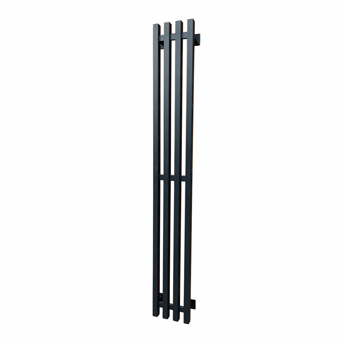 Полотенцесушитель подходит в самые современные и модные дизайн-концепции. За счет вертикального размещения одной стойки квадратного профиля эта модель является негабаритной и лаконичной. Дополнительно для удобства можно приобрести вешалки-крючки.