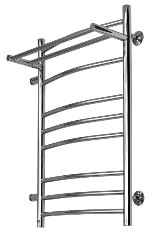 Полотенцесушитель представляет собой лесенку круглого профиля с верхней полкой и с боковым подключением 1.1/4″ (внешний диаметр 42 мм). Доведен до зеркального блеска технологией электроплазменной полировки. Перекладины дугообразные и расположены группами.
