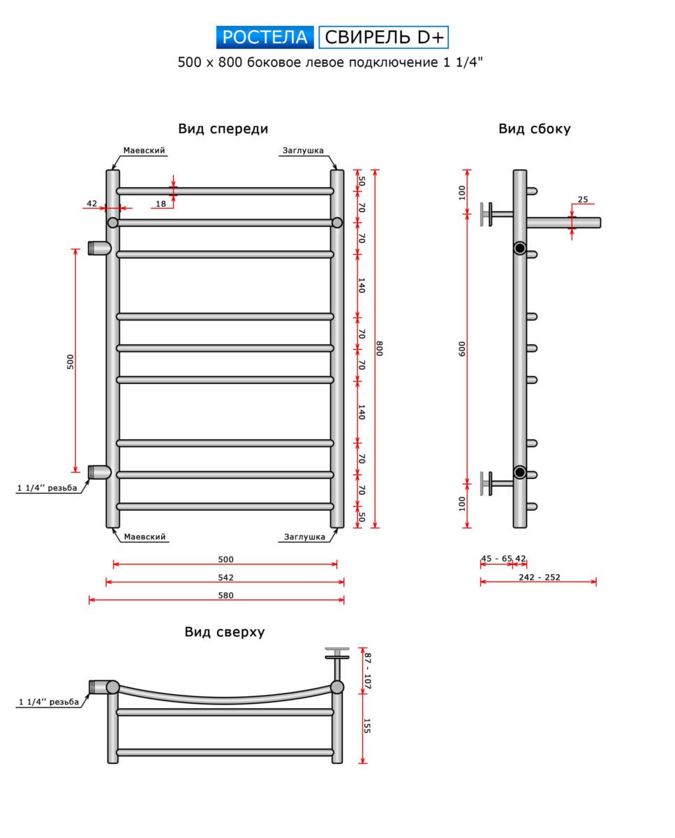 Полотенцесушитель Ростела Свирель Ду-32 D+ (бок.подв. левый,1 1/4" рез) 500*800/10