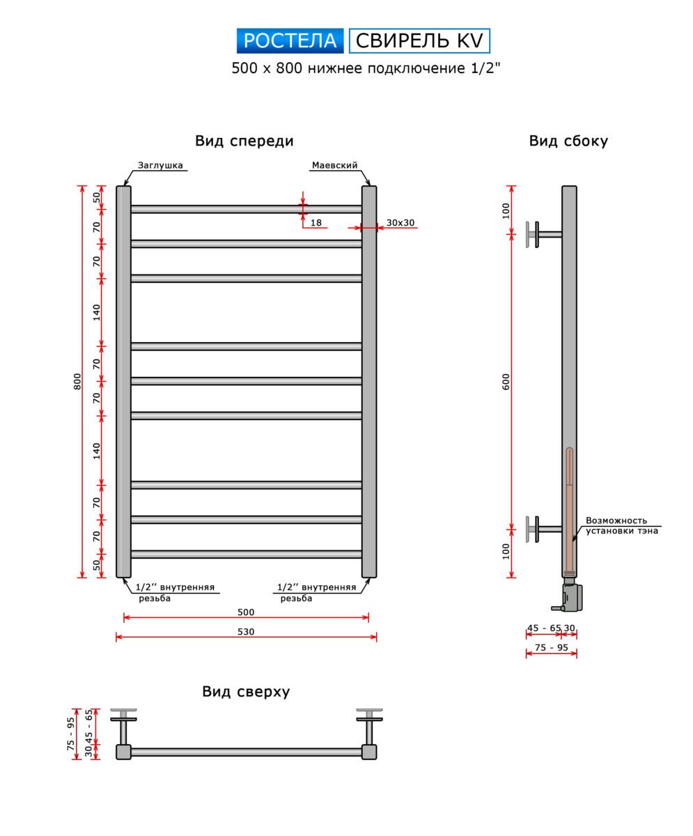 | Комплектация | Клапан Маевского – 1шт., Крепление – 4шт., Паспорт на изделие, Полотенцесушитель |
