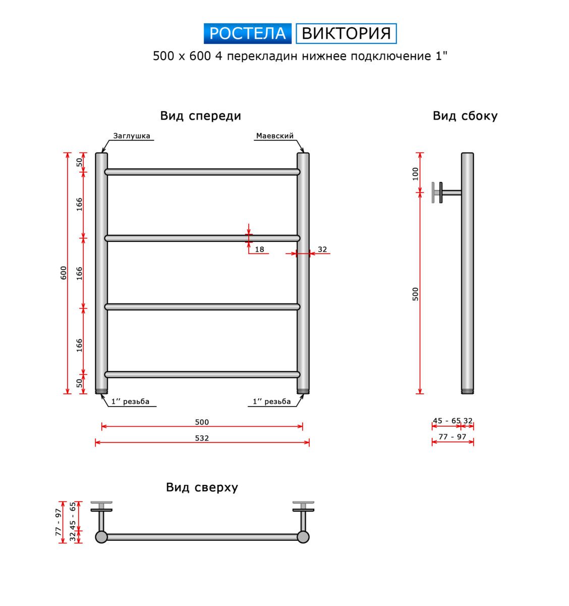 | Комплектация | Клапан Маевского – 1шт., Крепление – 2шт., Паспорт на изделие, Полотенцесушитель |