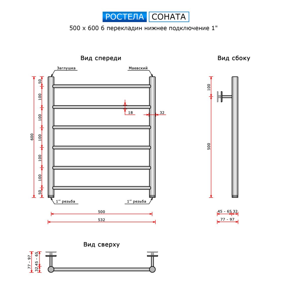 | Комплектация | Клапан Маевского – 1шт., Крепление – 2шт., Паспорт на изделие, Полотенцесушитель |