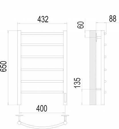 Полотенцесушитель Terminus «Классик» П6 400х650 электро (quick touch)