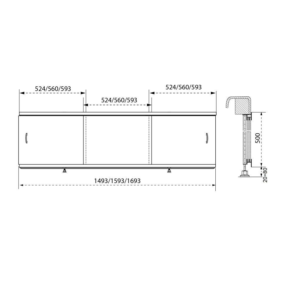Раздвижной фронтальный экран Тритон 160, Щ0000049088