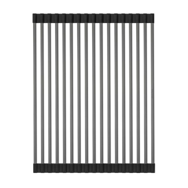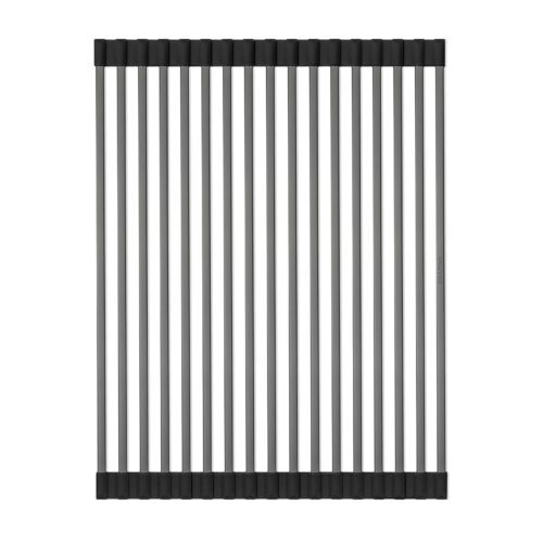 Ролл-мат может быть использован в качестве подставки для горячей посуды, сушилки для овощей и фруктов или коврика для разморозки продуктов. Благодаря двусторонним силиконовым наконечникам, ролл-мат защищает поверхность и может быть размещен на столешнице, крыле мойки или в специальных направляющих чаши кухонной мойки.