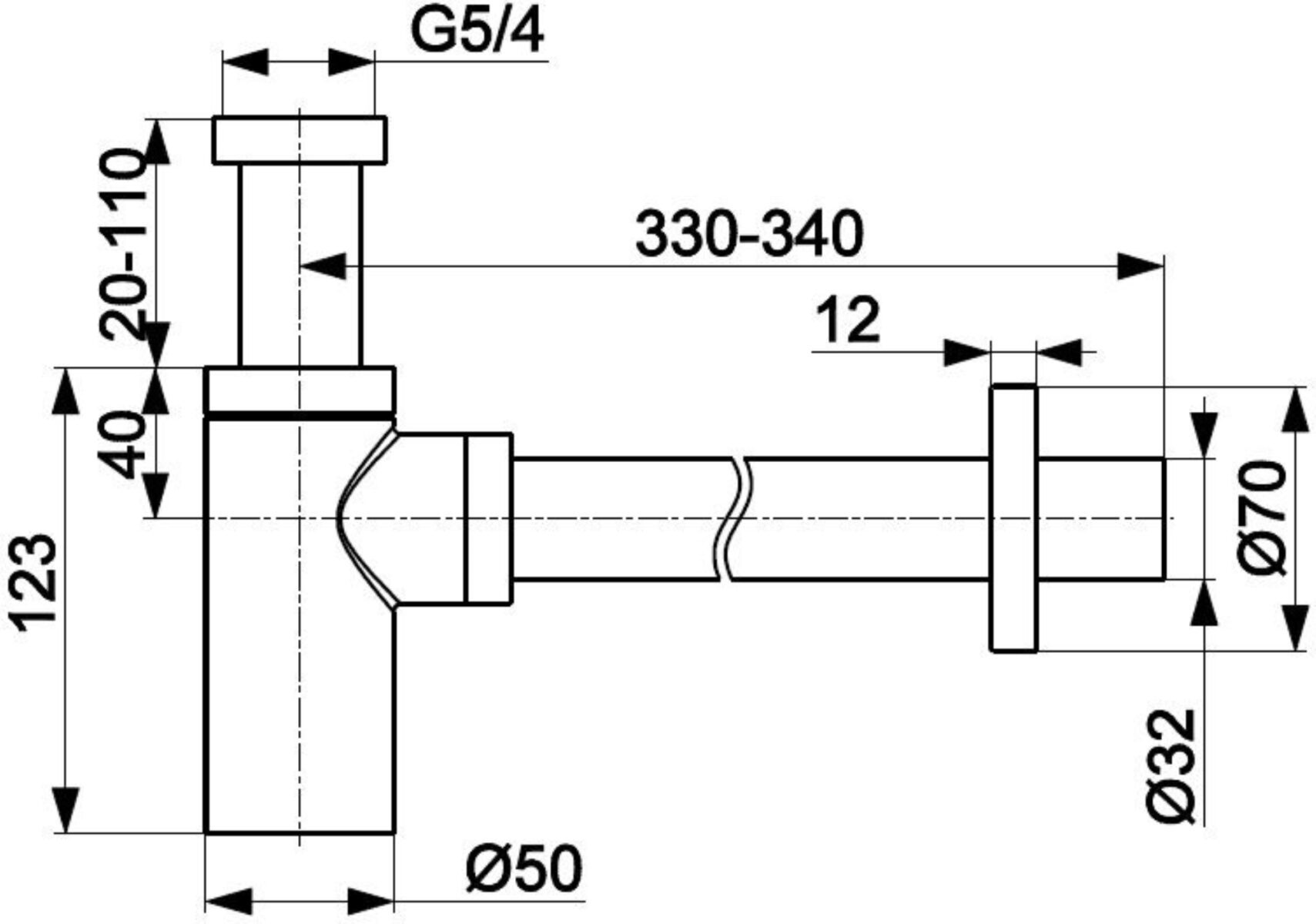 Сифон для умывальника бутылочный G5/4"-32 без донного клапана KFA Armatura 600-003-00