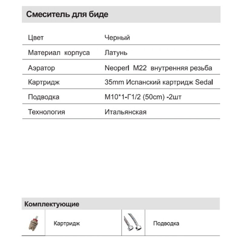 Смеситель для биде Faop A5009-6, чёрный