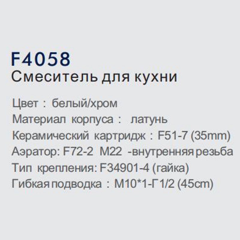 Смеситель для кухни Frap F4058, белый/хром