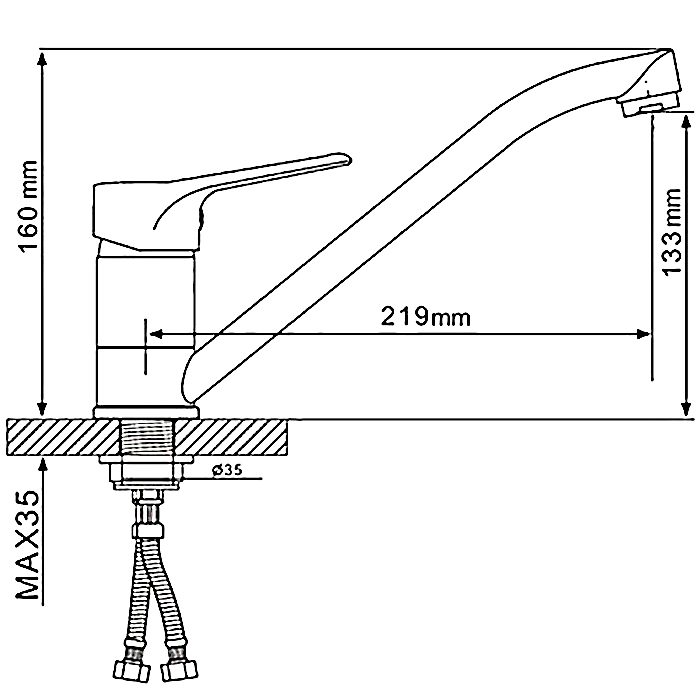 Комплект креплений, Аэратор, Гибкая подводка, Смеситель