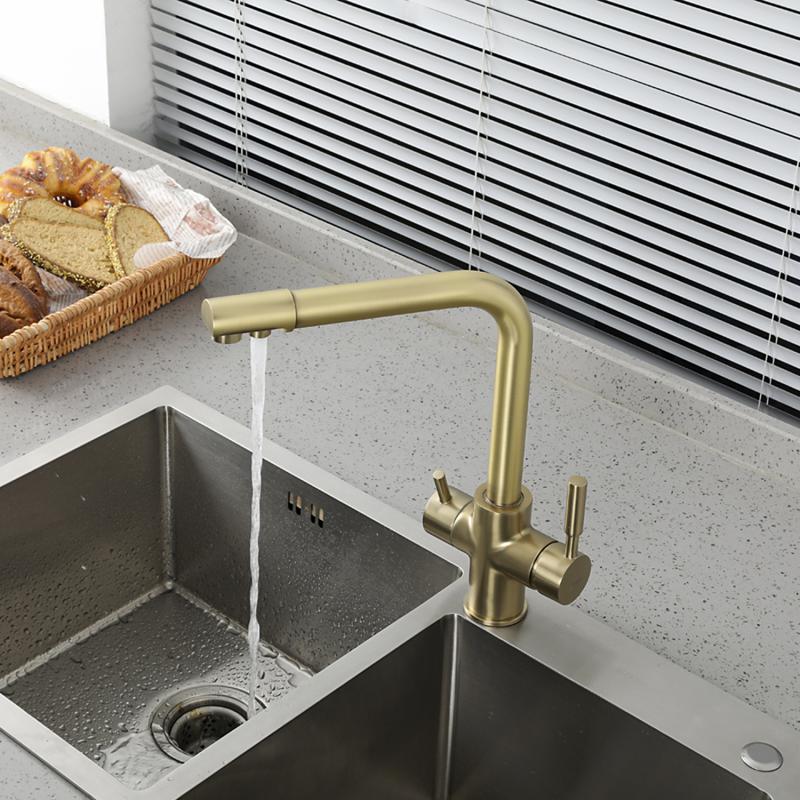 Смеситель для кухни под фильтр Frap F4352-3, золотой сатин