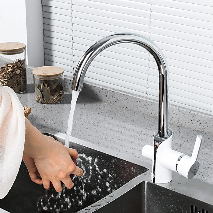 Смеситель для кухни под фильтр Gappo G4303-8, белый/хром