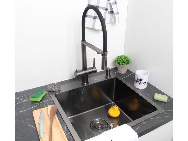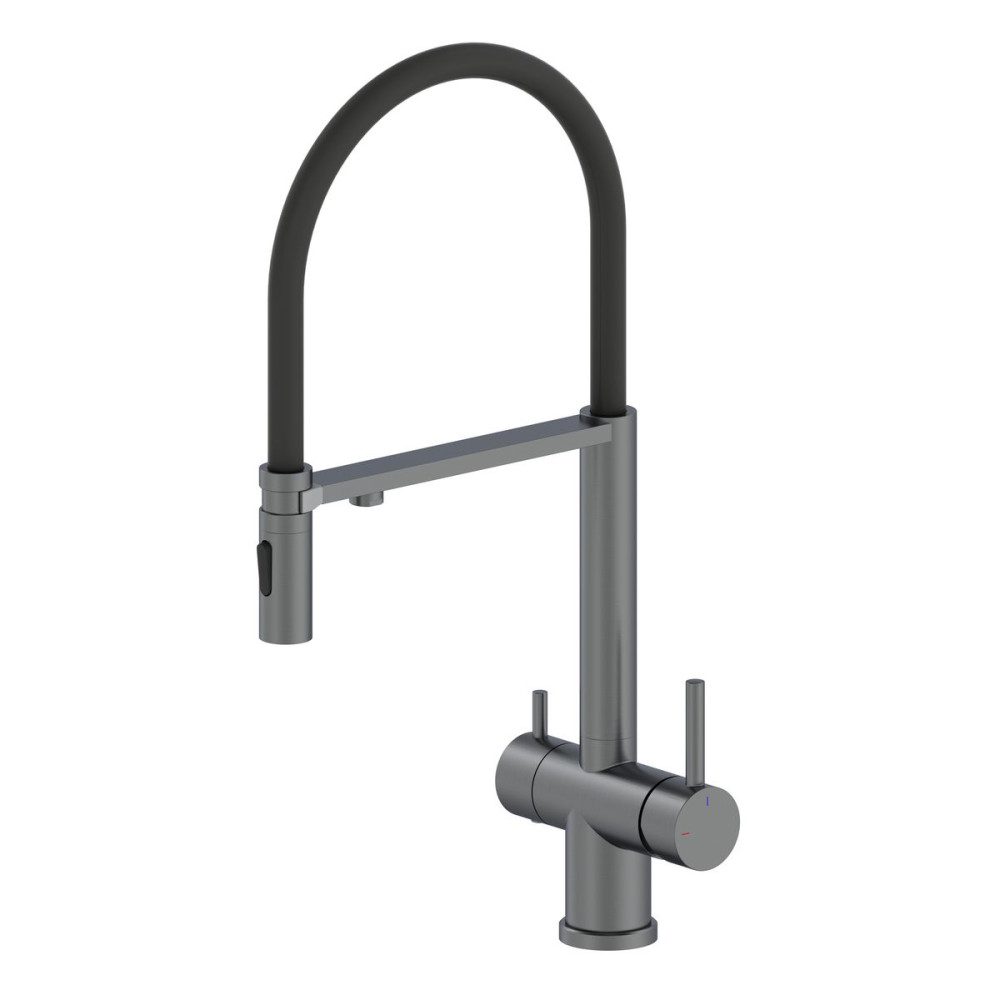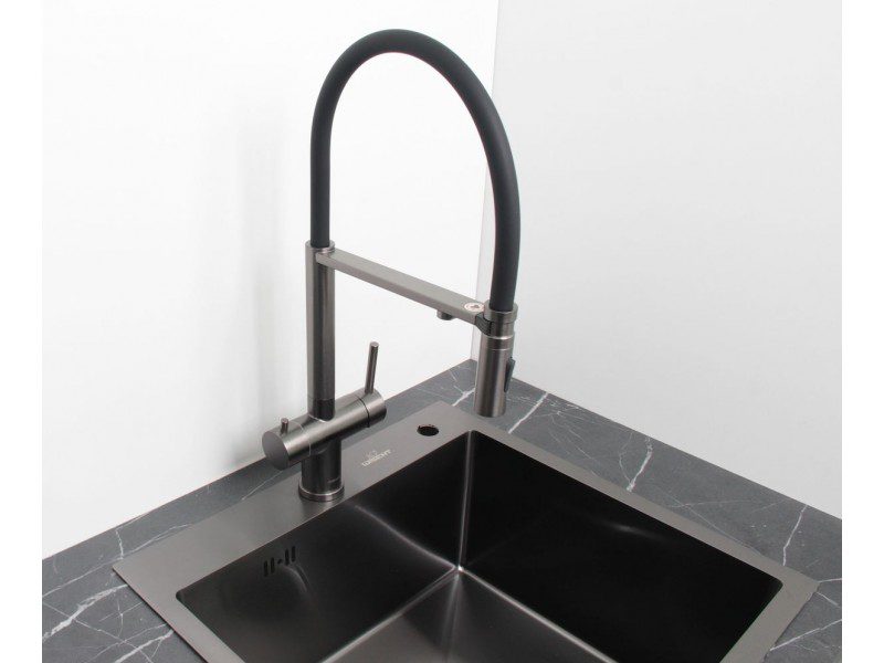 Смеситель для кухни под фильтр GERHANS K14390D-2, оружейная сталь/чёрный