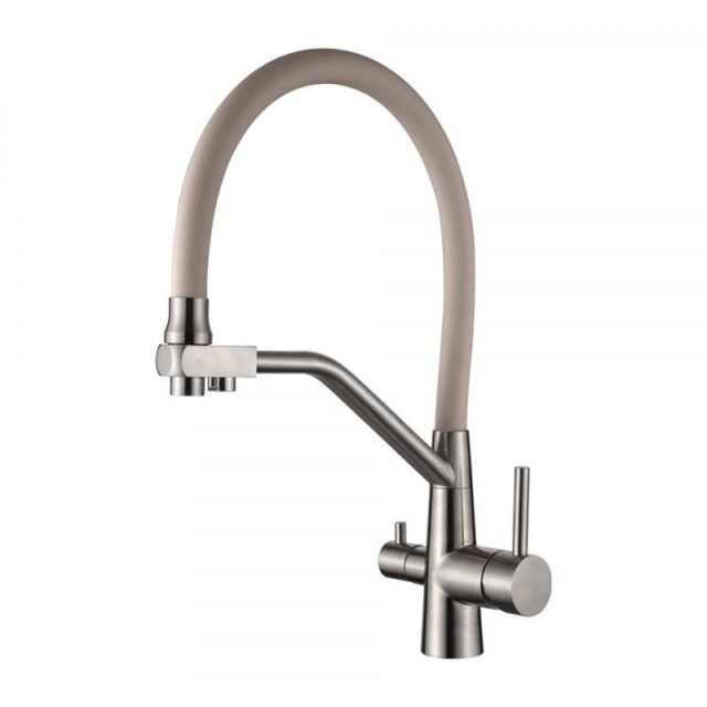 Смеситель для кухни под фильтр Ledeme L74855-16, нержавеющая сталь/бежевый