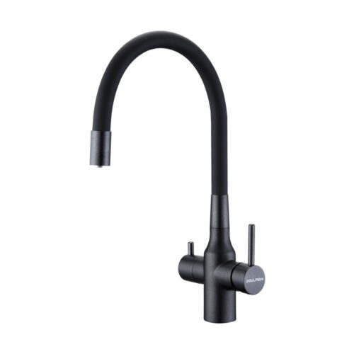 Смеситель для кухни с гибким фиксирующимся изливом, с возможностью подключения фильтра питьевой воды, поворотный излив.