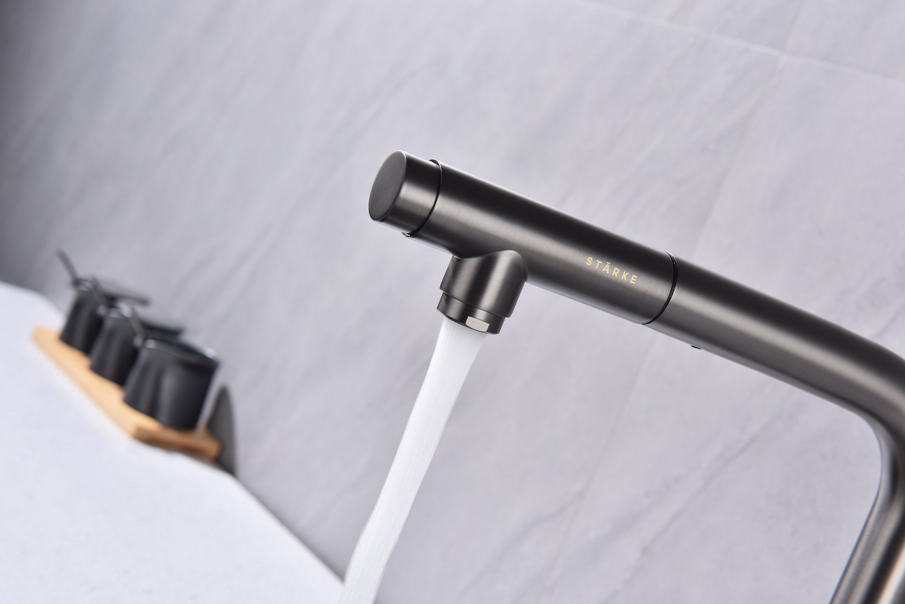 Смеситель Urban имеет отдельный канал для питьевой воды. Переключение режимов осуществляется с помощью удобной и эргономично расположенной кнопки. Благодаря такому функционалу, потоки воды не смешиваются, а переключение осуществляется максимально комфортно.