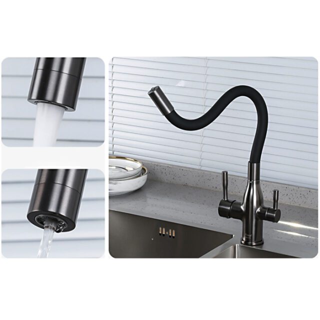 Смеситель для кухни под фильтр с гибким изливом Frap F4396-15, оружейная сталь