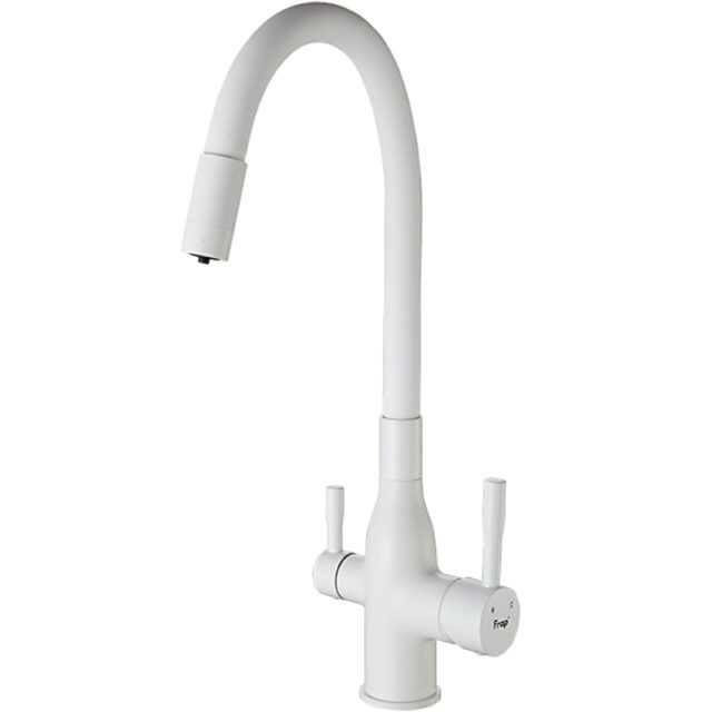 Смеситель для кухни под фильтр с гибким изливом Frap F4396-8, белый