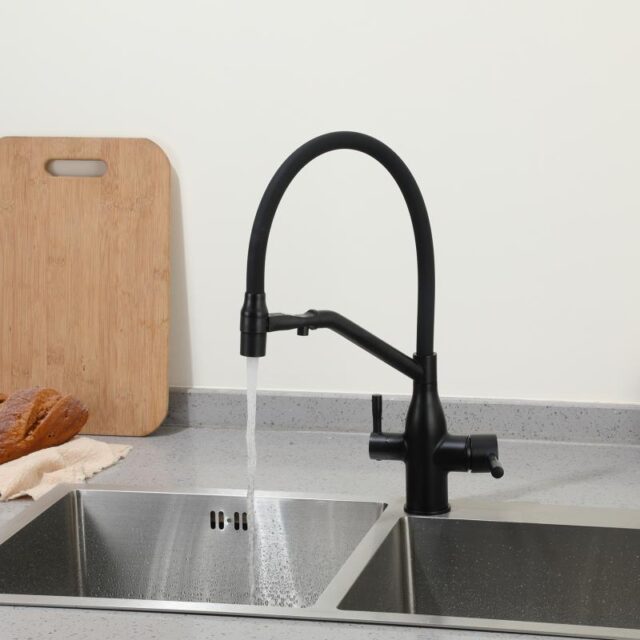 Смеситель для кухни под фильтр с гибким изливом Frap F4397-6, чёрный