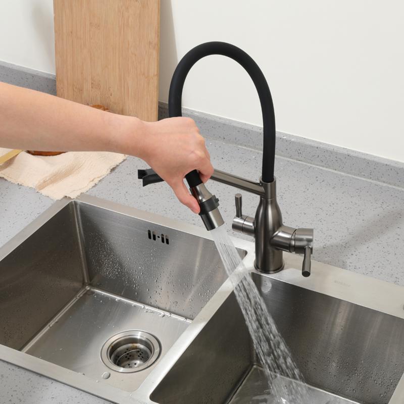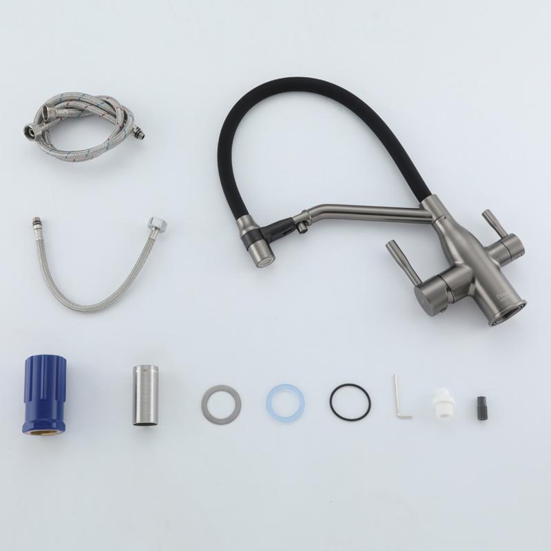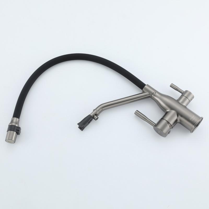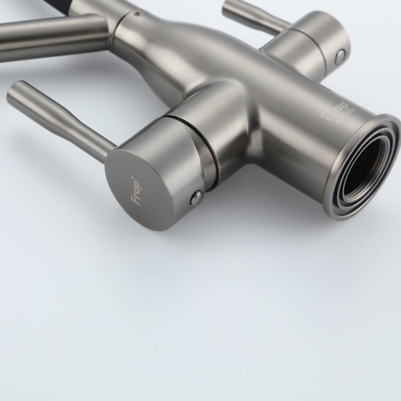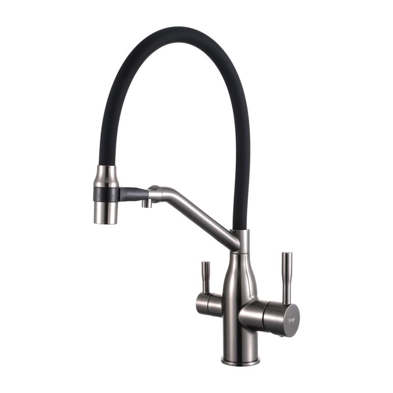Смеситель для кухни под фильтр с гибким изливом Frap F4397-9, оружейная сталь