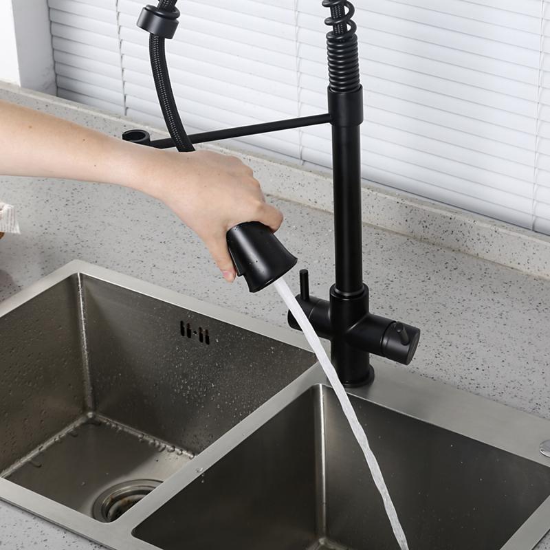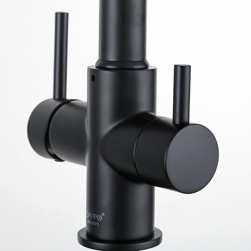 Смеситель для кухни под фильтр с гибким изливом Gappo G4398-66, чёрный