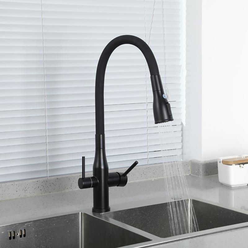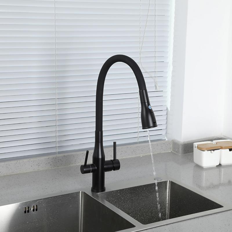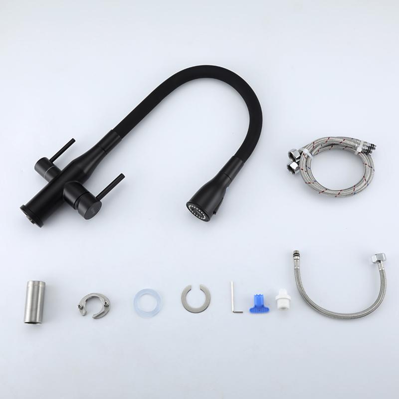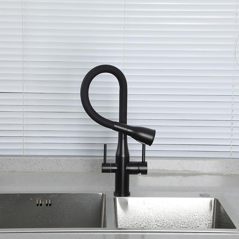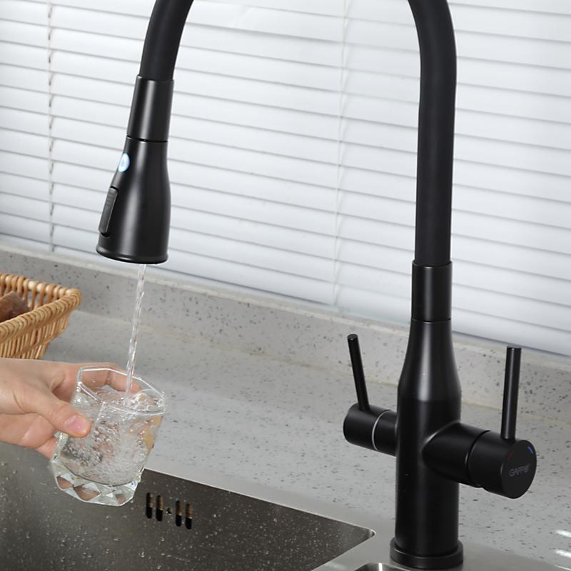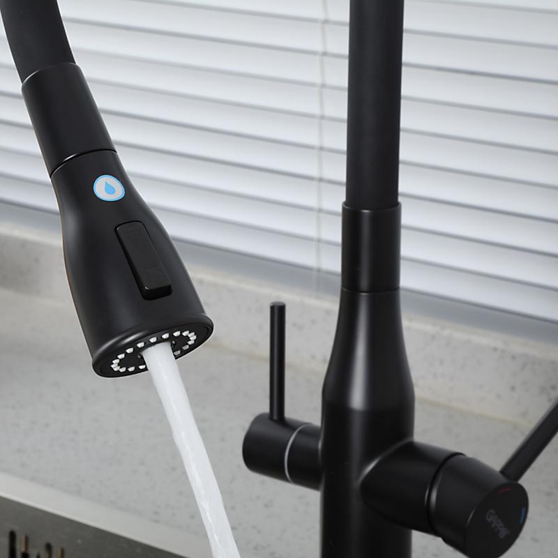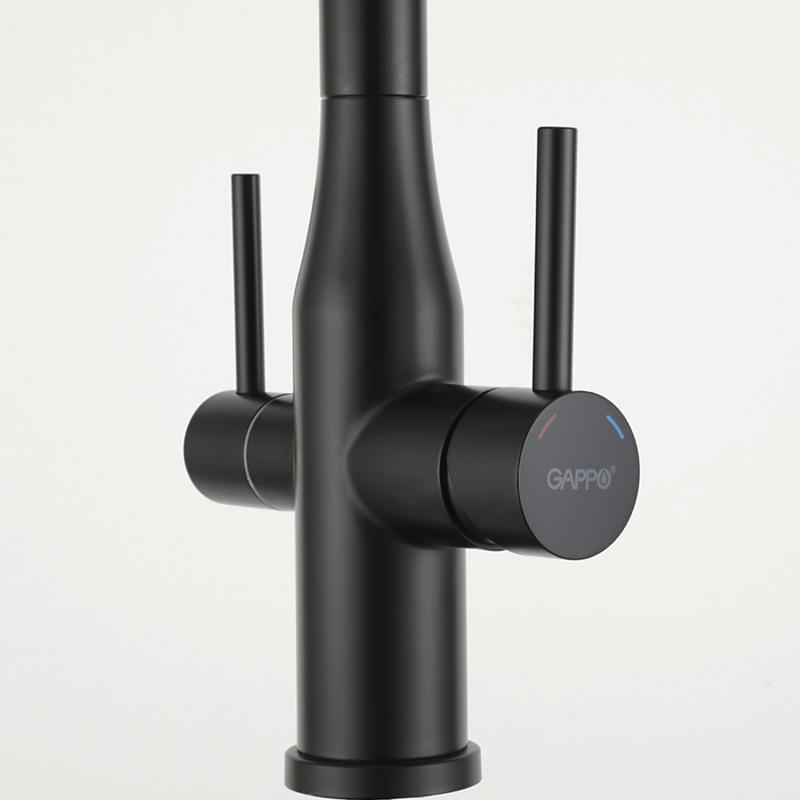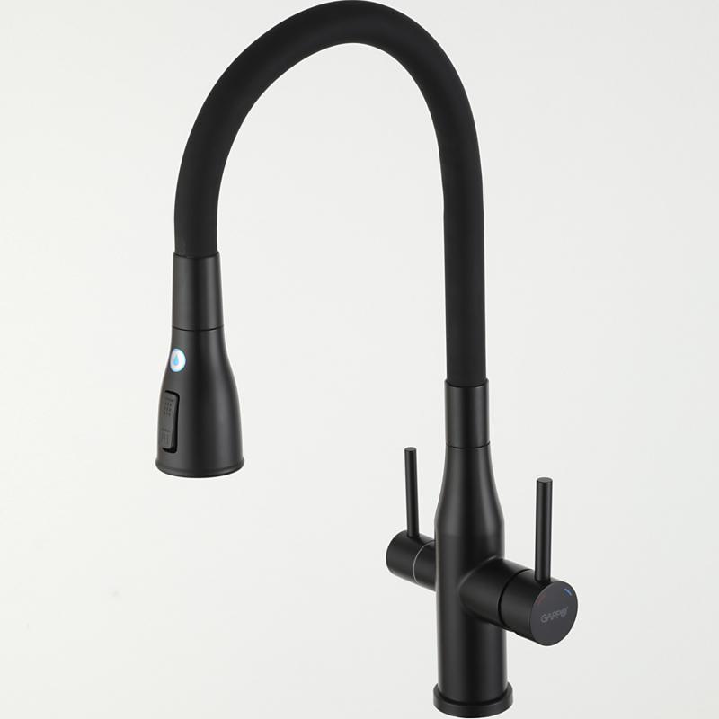Смеситель для кухни под фильтр с гибким изливом Gappo G4399-66, чёрный