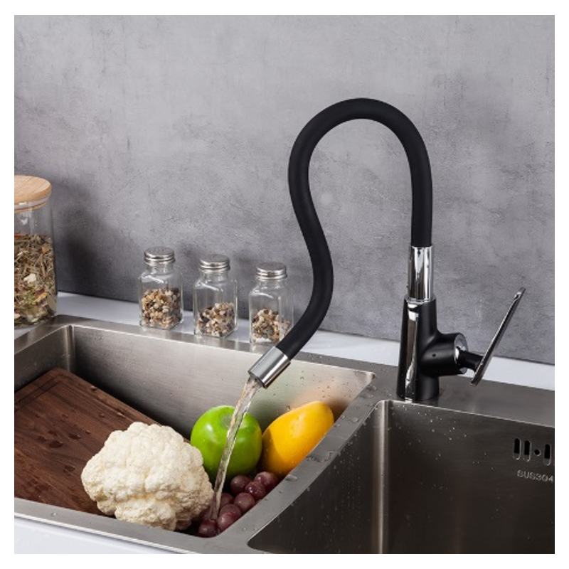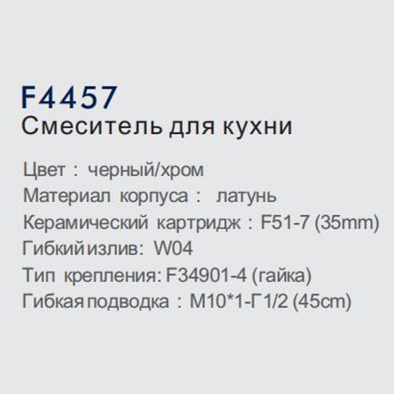 Смеситель для кухни с гибким изливом Frap F4457, чёрный/хром