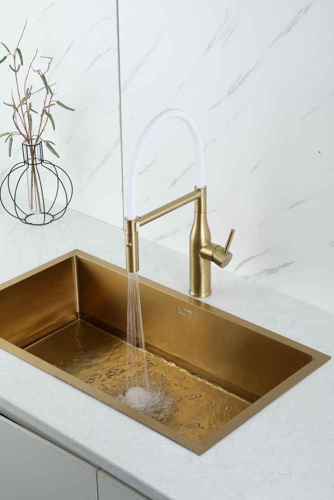 Смеситель для кухни с гибким изливом Gappo G4098-23, золотой сатин