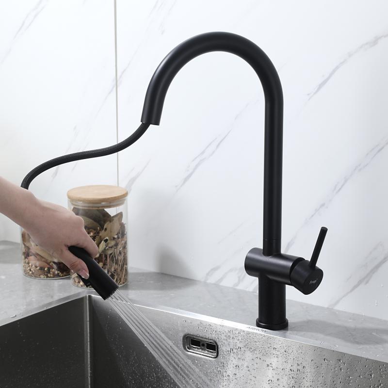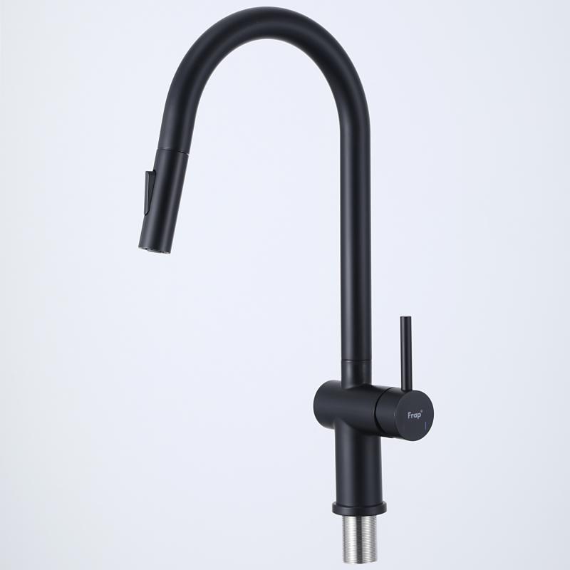 Смеситель для кухни с выдвижным изливом Frap F60807-6,чёрный