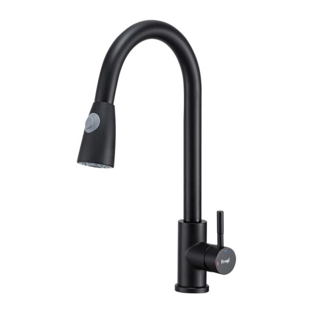 Смеситель для кухни с выдвижным изливом Frap F60991-6, чёрный