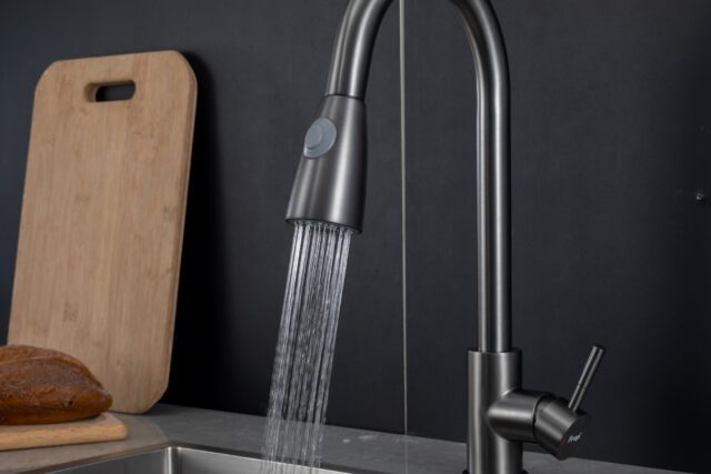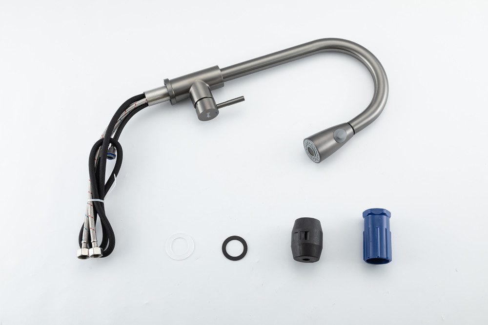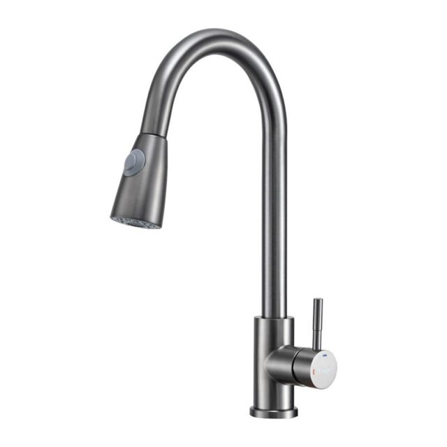 Смеситель для кухни с выдвижным изливом Frap F60991-9, оружейная сталь