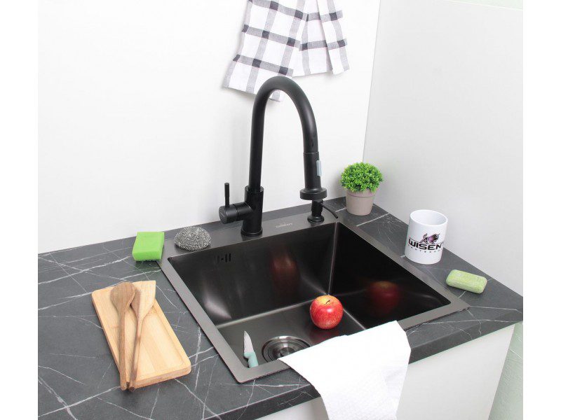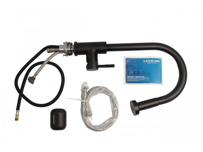Смеситель для кухни с выдвижным изливом Ledeme L76005B-1, чёрный