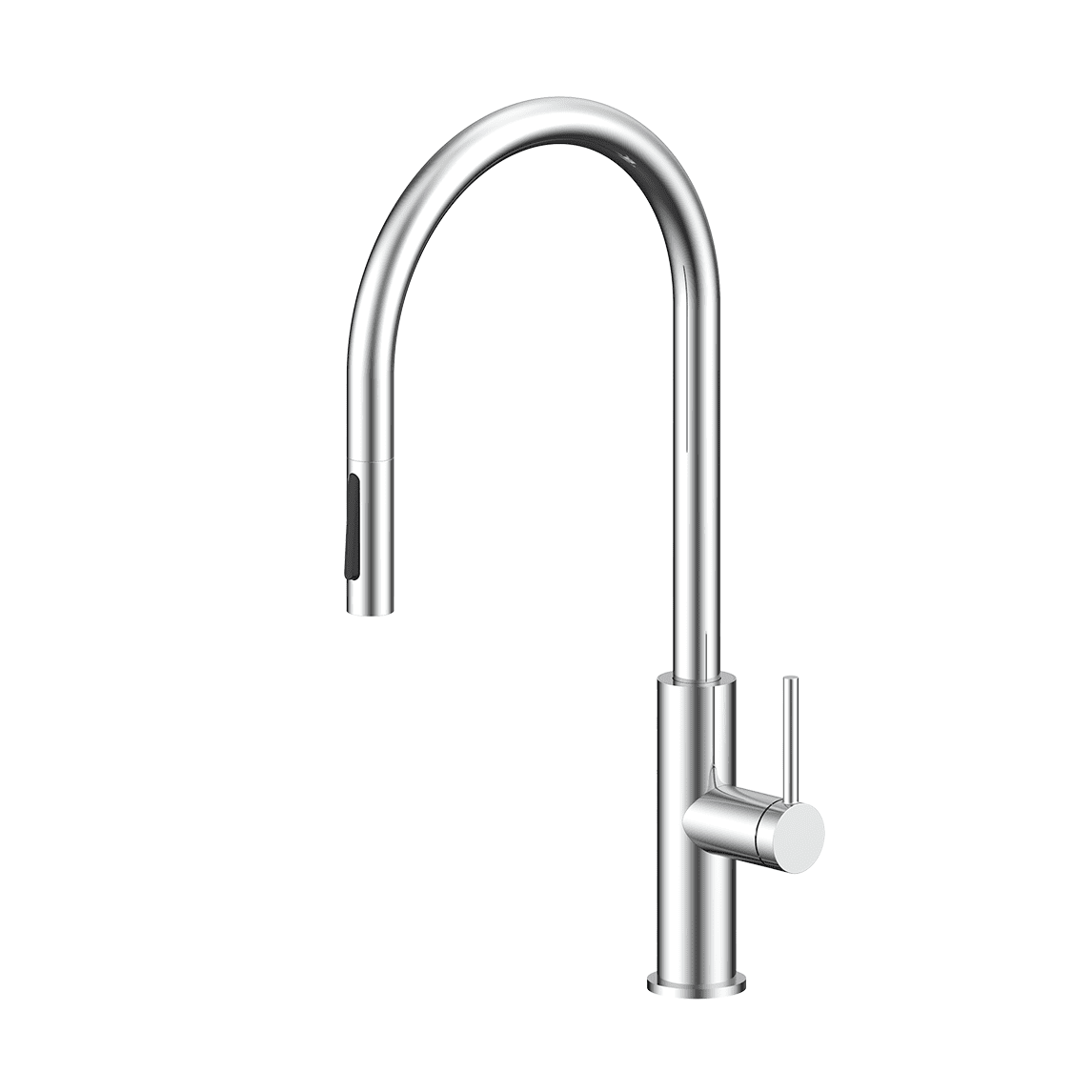 Помимо подачи стандартной струи, смеситель оснащен функцией подачи воды в режиме «душ» для идеального промывания посуды и продуктов - Высокий изогнутый излив
