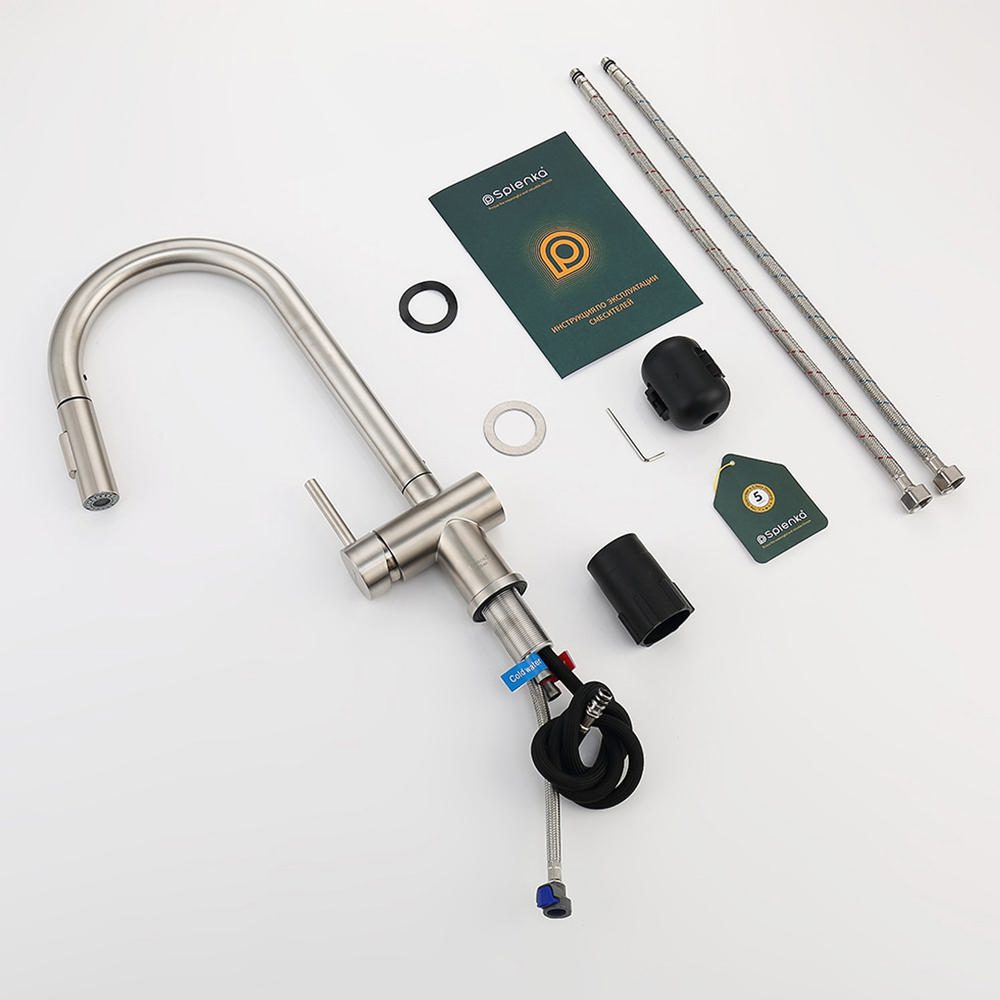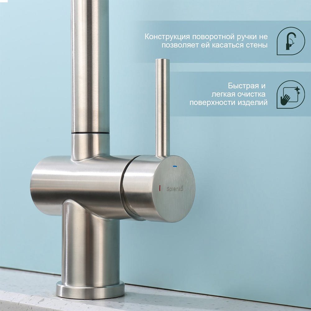 Смеситель для кухни с выдвижным изливом Splenka S204.49.05, сатин