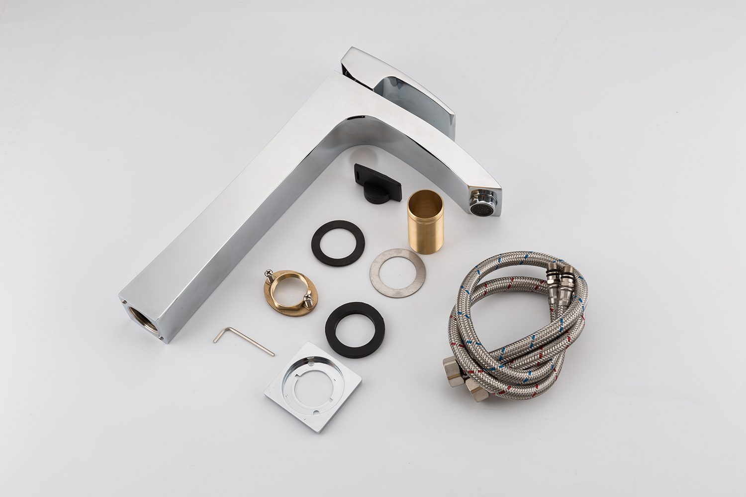 | Комплектация | Гибкая подводка G1/2, 500 мм, Ключ для аэратора, Ключ шестигранный, Набор для монтажа, Смеситель |