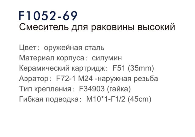 Смеситель для умывальника Frap F1052-69, оружейная сталь