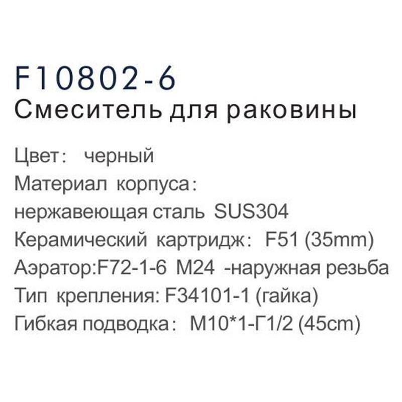 Смеситель для умывальника Frap F10802-6, чёрный
