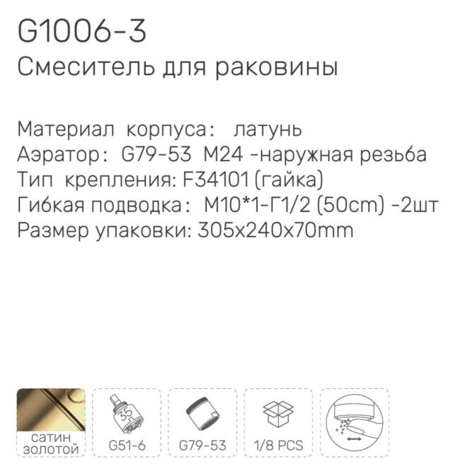 Смеситель для умывальника Gappo G1006-3, золотой сатин