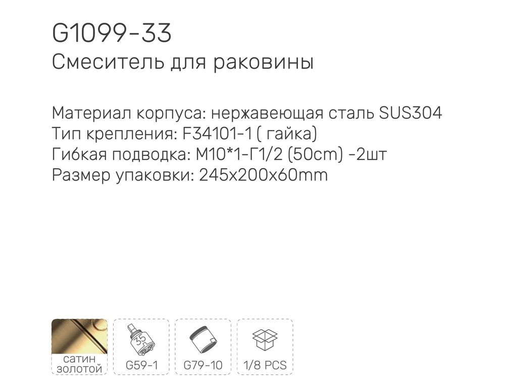 Смеситель для умывальника Gappo G1099-33, золотой сатин