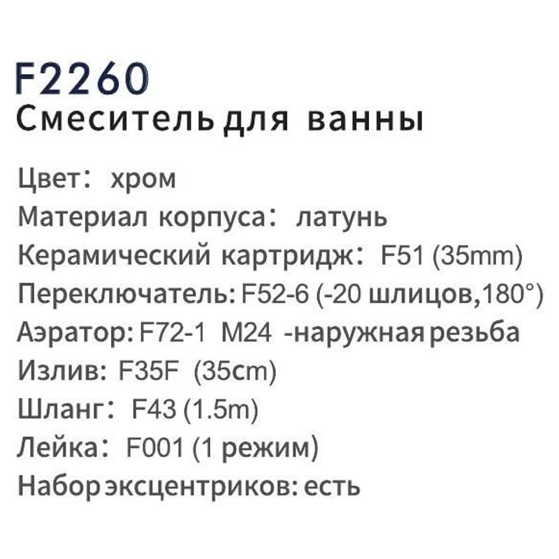 | Комплектация | Аэратор, Душевой гарнитур, Смеситель, Эксцентрики |