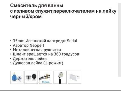 | Комплектация | Аэратор, Душевой гарнитур, Смеситель, Эксцентрики |