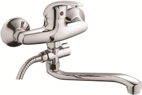 Смеситель, Набор для монтажа, Лейка для душа, Шланг в металлической оплётке 1500 мм, Настенный держатель для лейки, Дивертор