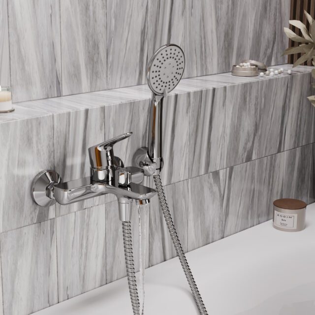 Лейка для душа, Набор для монтажа, Настенный держатель для лейки, Смеситель, Шланг ПВХ 1500 мм