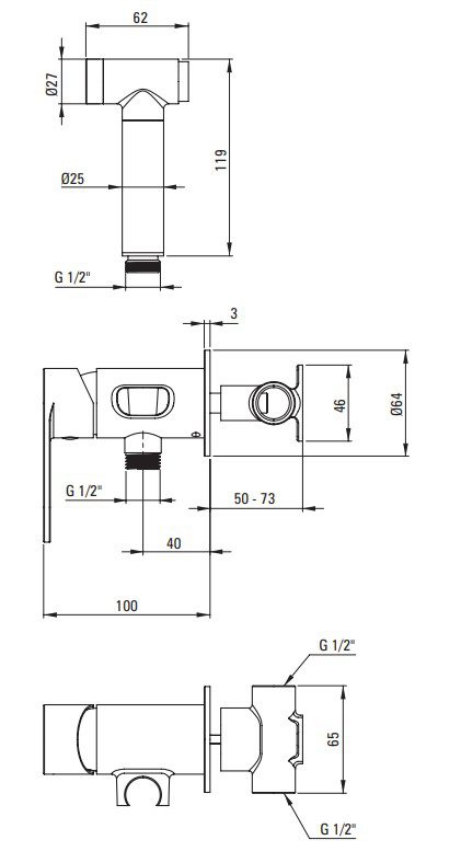 | Комплектация | Гигиеническая лейка, Душевой шланг, Смеситель |