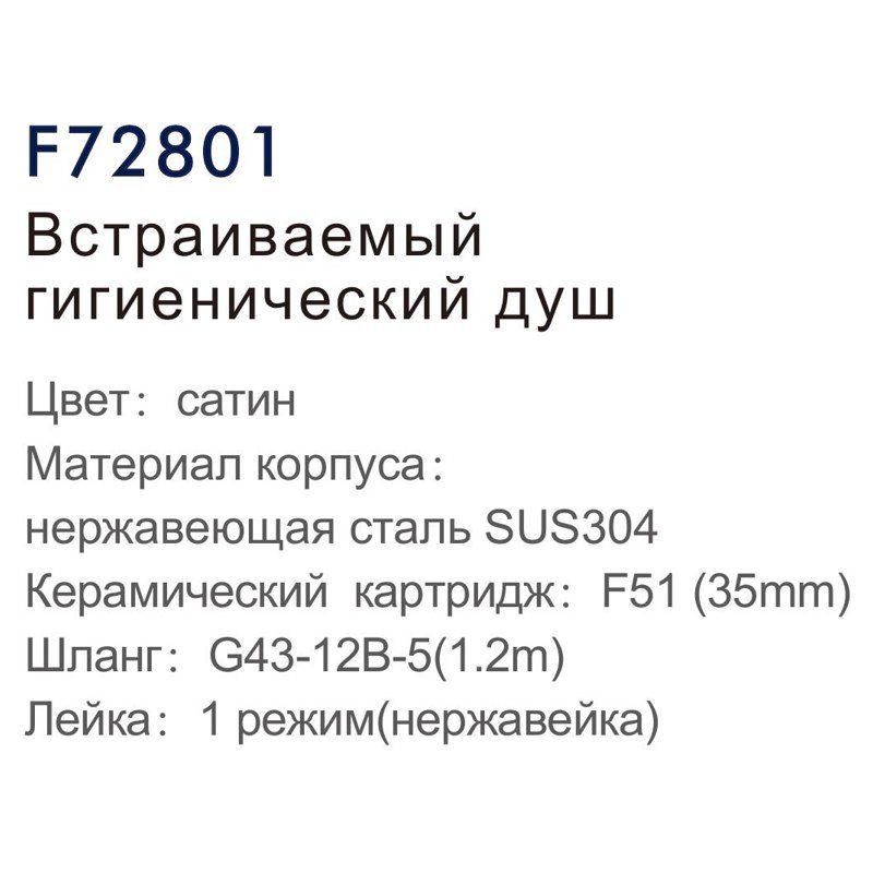 Смеситель скрытого монтажа для гигиенического душа Frap F72801, сатин
